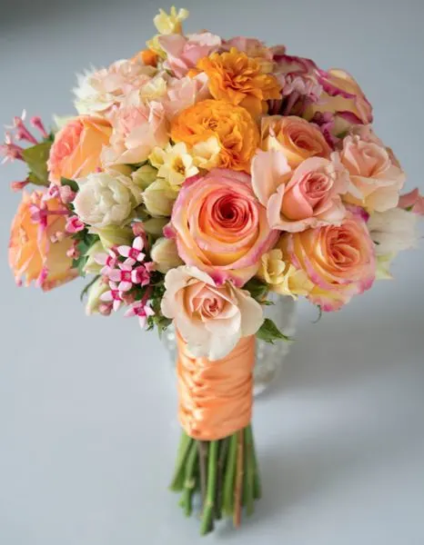 Step into a world of enchanting romance with the “Peach Sorbet Splendor” bridal bouquet. This exquisite arrangement, measuring 14 to 16 inches in diameter, captures the essence of love and beauty through its harmonious blend of delicate peach hues. As a symbol of new beginnings and tender affection, this bouquet is a stunning accessory for a bride on her special day.