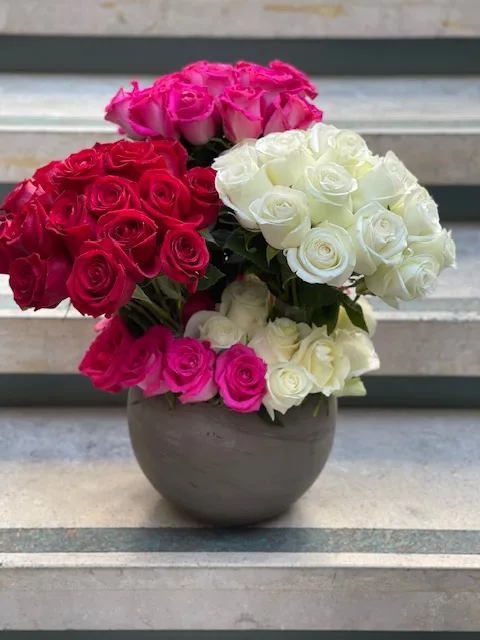 Indulge in the opulent charm of “Dolce Fiorella,” a large rose arrangement that brings beauty and elegance. With a nod to the Italian language, where “Dolce” means “sweet” and “Fiorella” translates to “little flower,” this arrangement captures the essence of delicate sweetness and lush beauty. Enveloped in a profusion of roses, “Dolce Fiorella” truly celebrates floral magnificence.