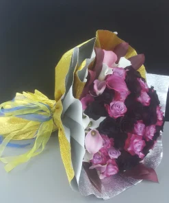 The “Regal Elegance” wrap bouquet is a stunning composition that celebrates the regal beauty of black and purple roses. This arrangement captures the essence of sophistication and elegance, blending the mysterious allure of black roses with the enchanting charm of purple roses. Join us as we explore the petals of this bouquet, where each rose becomes a symbol of refined beauty and timeless grace.