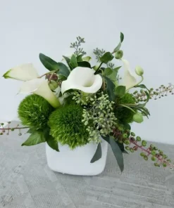 Teatime Elegance: A Pretty Green Cup Flower Arrangement